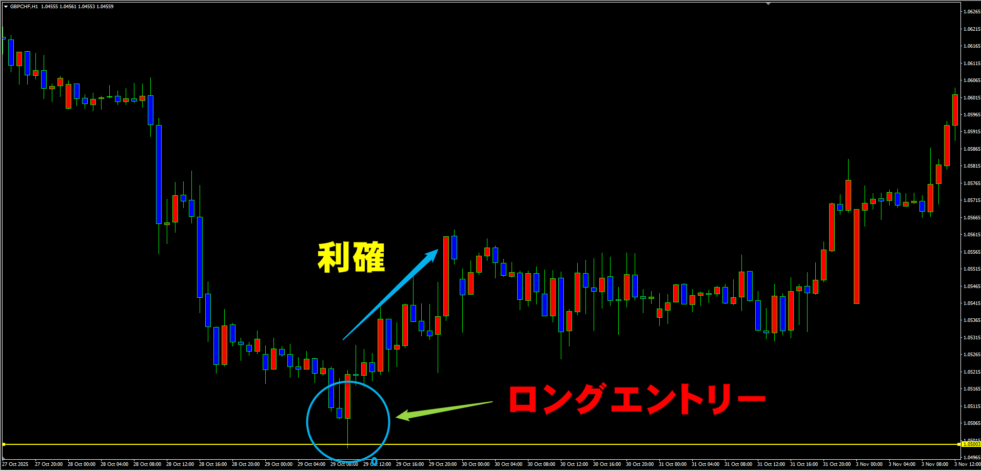 【リアルトレード解説】GBPCHF (2025.10.29 )1.05キリ番タッチからのシンプルトレード
