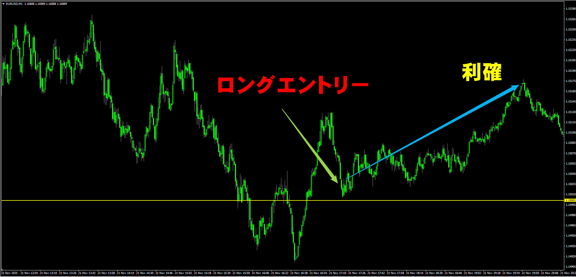 【リアルトレード解説】EURUSD(2025.11.21) 1分足トレード解説
