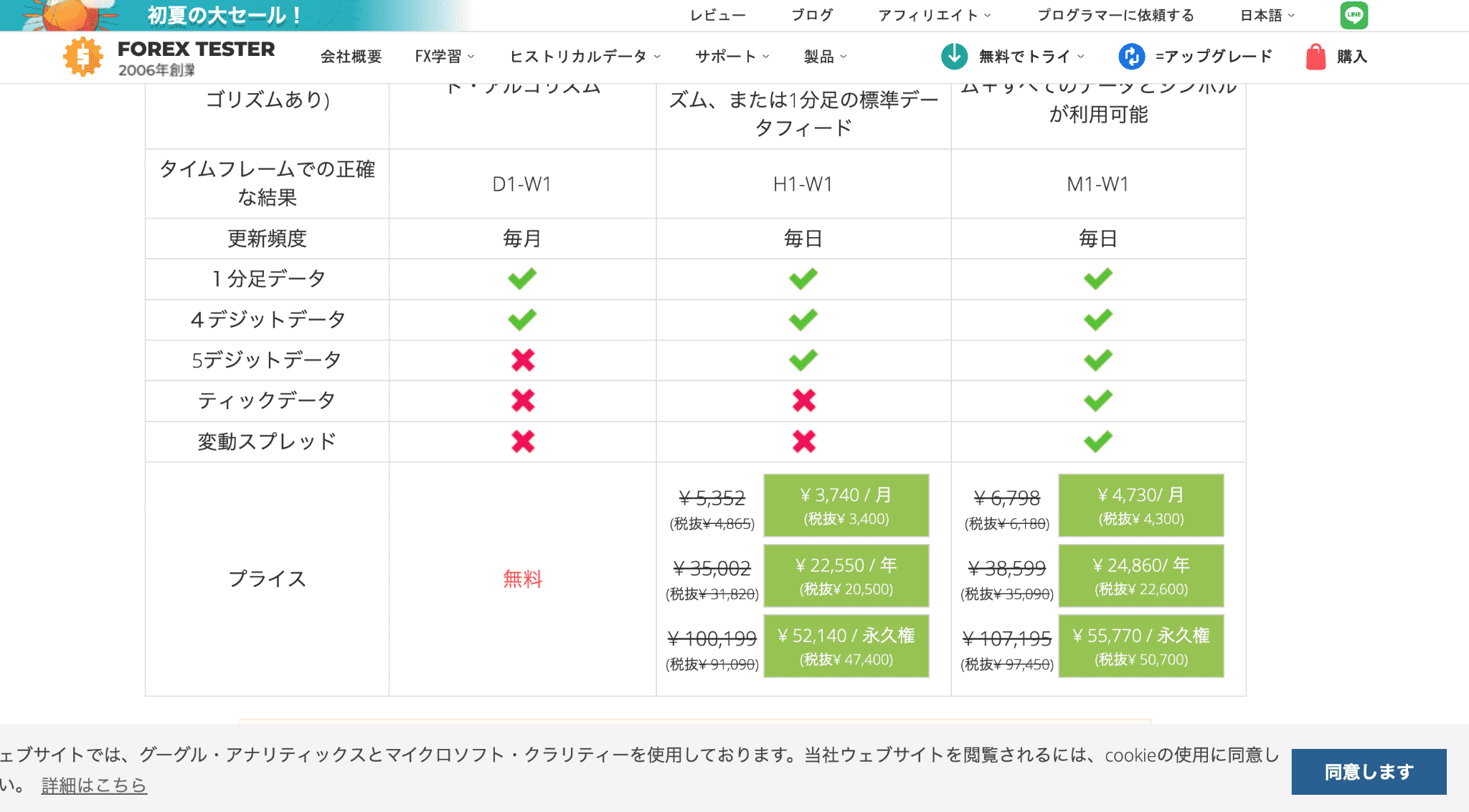 ただしこの場合、契約をやめると最新の相場データでの検証ができなくなるのがデメリットです。