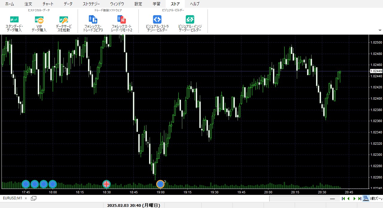 最も高精度なデータで、ローソク足1本の中の動きまで完全に再現されます。
