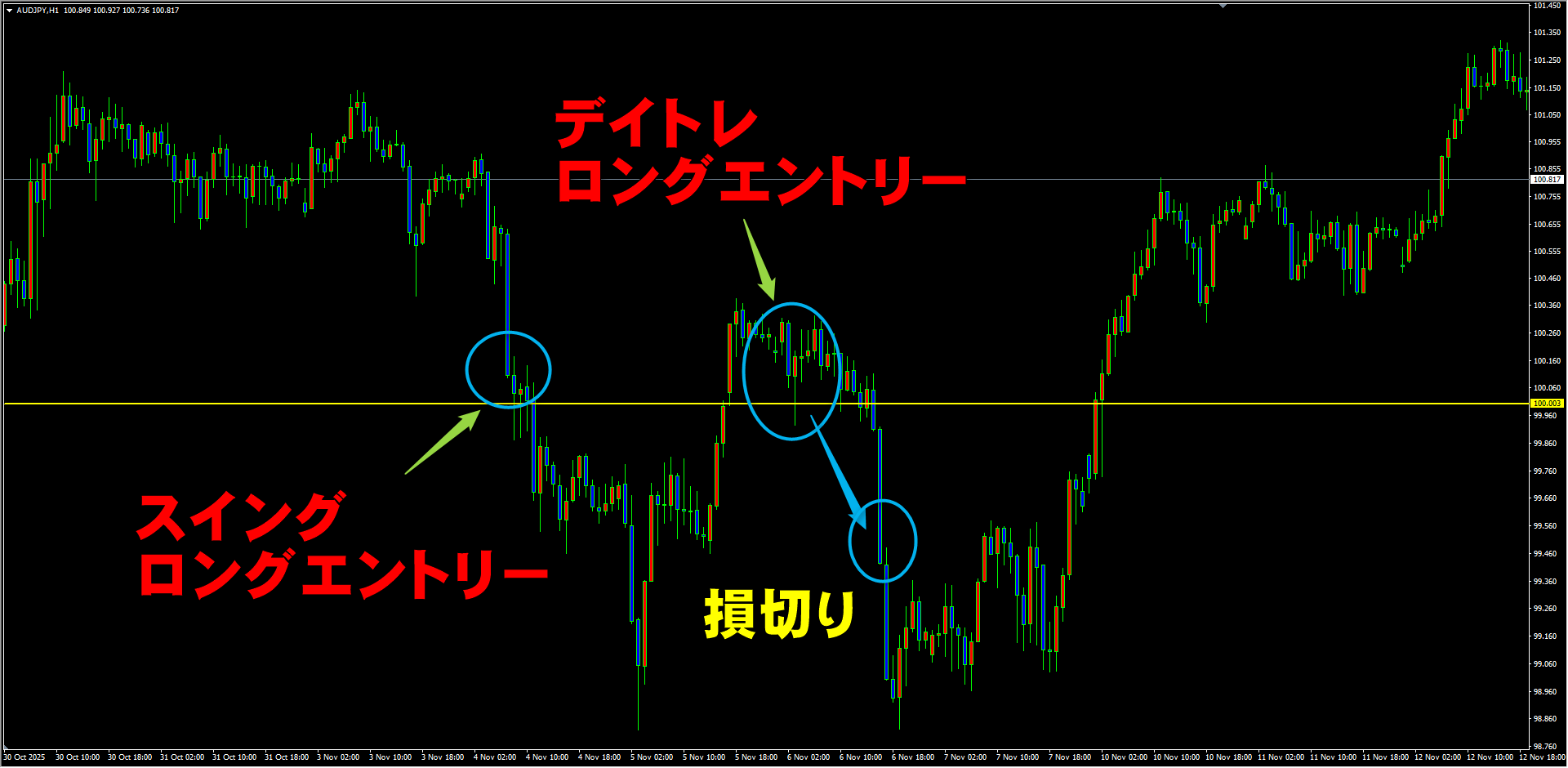 【リアルトレード解説】2025.11.05 AUDJPY 負けトレード公開!100円ラインでの攻防とデイトレスイングの行方
